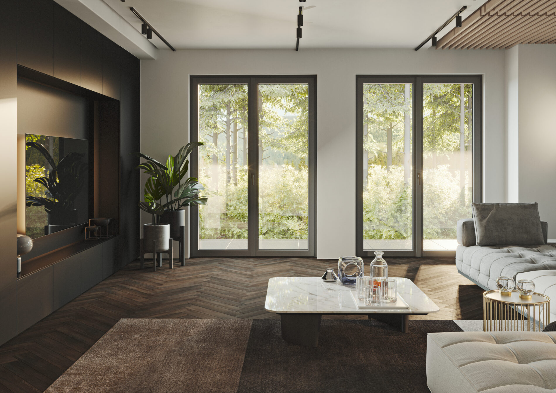 Ravia PRO unisce estetica e funzionalità con profili sottili, forme lineari e complanarità perfetta tra anta e telaio. Il nodo centrale ridotto e la maniglia centrale esaltano la simmetria, mentre le ampie vetrocamere diffondono più luce, creando ambienti moderni, luminosi e armoniosi.